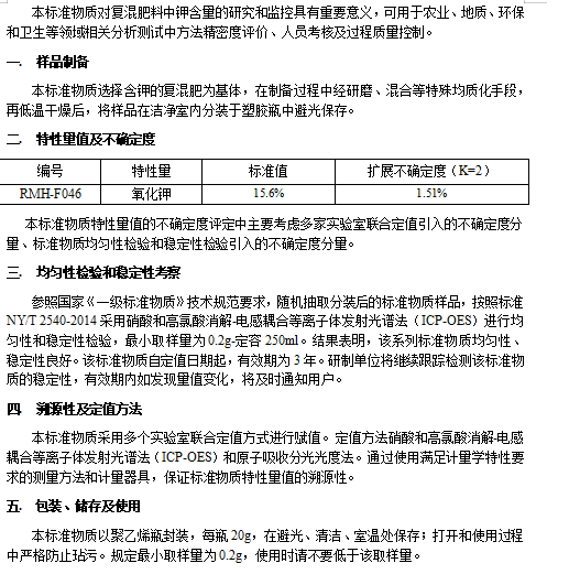 我对您的复合肥中钾成分分析标准物质产品感兴趣,请发具体的信息及报价,谢谢!