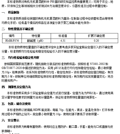 有机无机复混肥料pH值分析标准物质