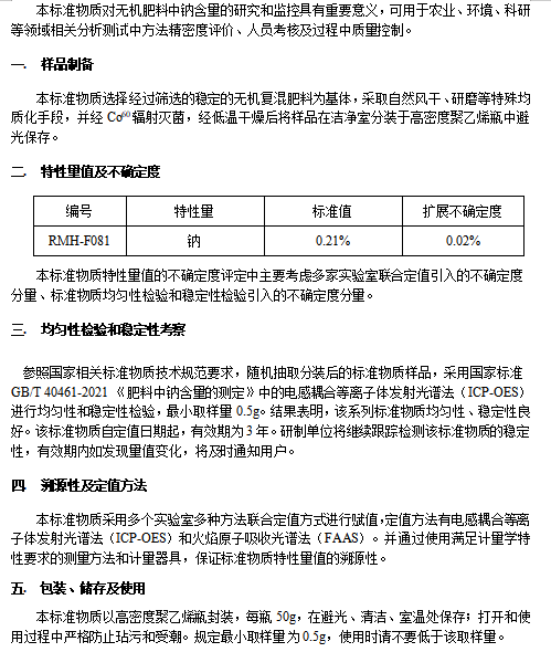 无机肥料中钠含量分析标准物质